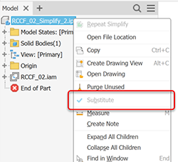Substitute outputs a simplified Inventor part that populates a Substitute Model State.