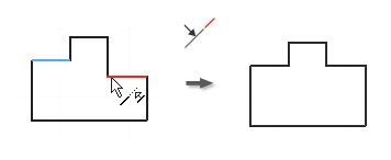 The Symmetric constraint causes selected lines or curves to become proportionately constrained about a selected line. Segments constrained to the selected geometry reorient when the constraint is applied.