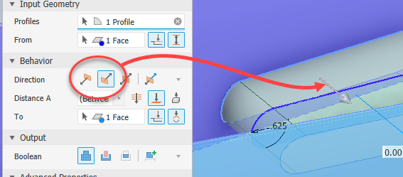 Flipped Direction - Extrudes in the direction opposite of Direction (default).