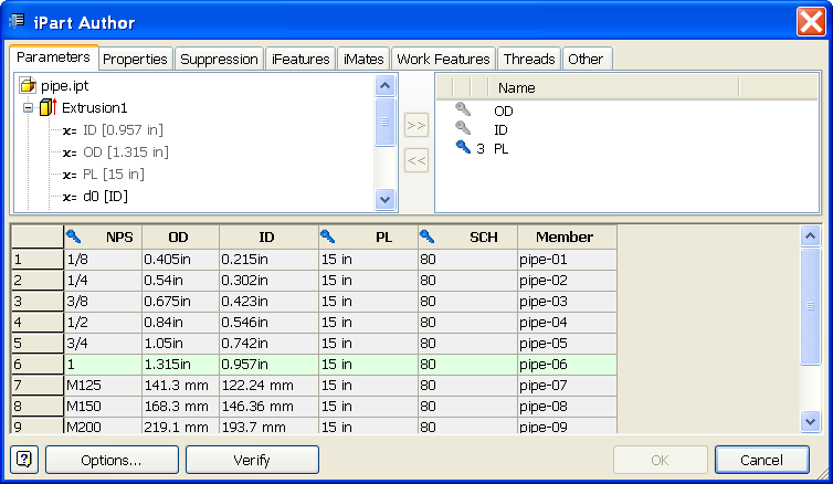 For instance, open the sample pipe iPart Autodesk\Inventor Professional