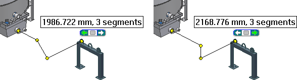 As you select valid geometry, such as two circular openings, vertices, and work points, the system generates the required segments and route points. More than one routing solution can exist based on the points selected. In that case, the Select Other command displays. You can cycle through the solutions upon route creation or later edits, and select the one that best fits your needs.