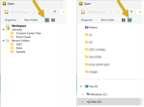 QAT Open (Ctrl+O)The Open dialog provides access to files and options to use when opening the file.