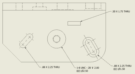 Before you begin a drawing, define a dimension style with a hole or slot note definition for each hole or slot type.