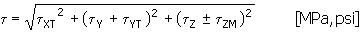 τ XT | x-component of shear stress caused by torque T [MPa, psi] | |