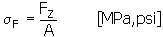 σ F | normal stress caused by the axial force F Z [N, lb] | |