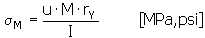 σ M | normal stress caused by the bending moment M [mm, in] |