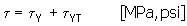 τ YT | y-component of shear stress caused by torque T [MPa, psi] |