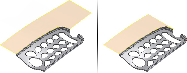 Click Apply to create the runoff surface. The following image displays a tangent surface on the left, and a rule surface on the right.