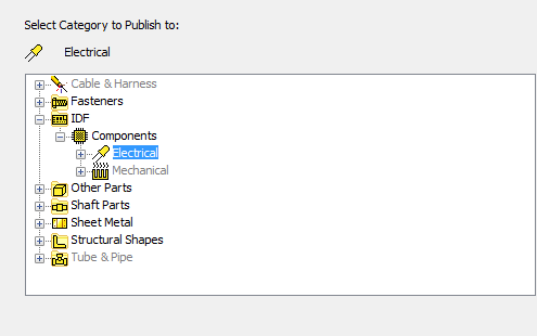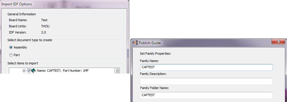 Use the IDF Component command to author an IDF part for publishing to the Content Center Library. IDF parts published with the IDF Component command are automatically used when you import/open an IDF file with the corresponding parts.