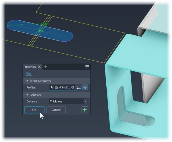Click OK to create the cut feature.