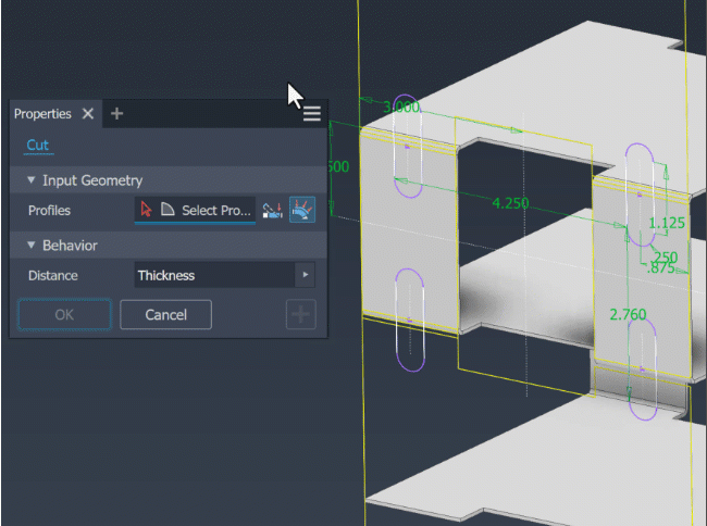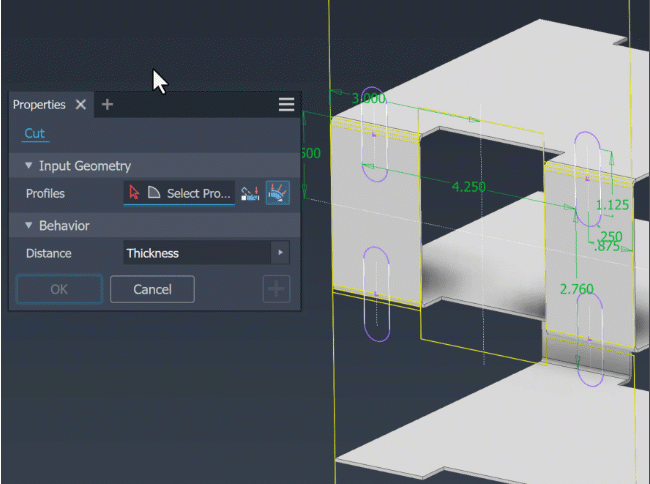 Under Behavior, choose the options needed to create the desired cut feature: