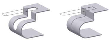 When creating a profile sketch to use for a cut feature that cuts across bends, it is useful to have unfolded geometry projected in your sketch. This command projects the flattened face along with bend lines, which you can use to dimension your sketch.