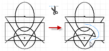 Inventor trims all lines and curves that the cursor passes over.