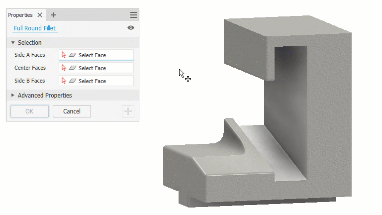- Optimize for Single Selection. After the first face is selected, the second face selector is activated minimizing the steps for selecting single faces.