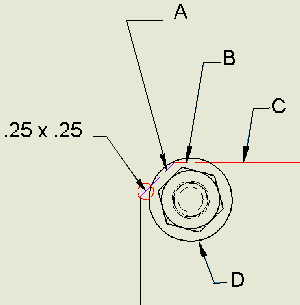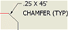 Click to place the chamfer note. The default attachment point is the midpoint of the chamfer, but after the chamfer note is created, you can click the attachment point and drag the point to a new location on the same view.