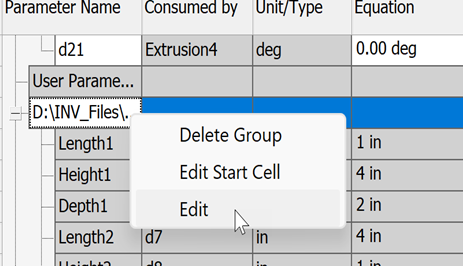 You cannot edit the parameters in a spreadsheet from the Parameters dialog box. If the spreadsheet file is linked, you can open the spreadsheet in Microsoft Excel and edit it. You can use the following procedure to edit either a linked or an embedded spreadsheet.