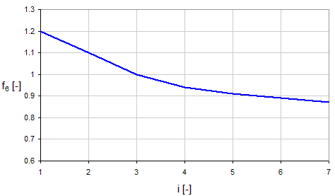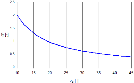 The ratio factor corrects the design power and takes into account difference of the transmission ratio from the normal. The reason of the ratio factor comes from modification of load tension distribution and its affect to chain fatigue. By default the ratio factor is determined from the following chart with respect to actual transmission ratio.