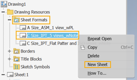 Sheet Formats. Right-click on a sheet format, and select New Sheet.