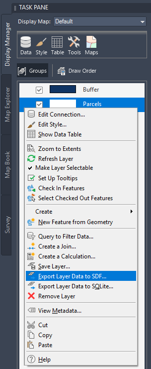 Right-click the Parcels layer to export it.