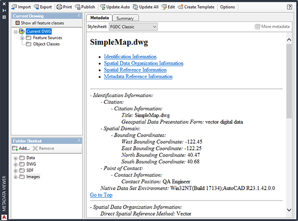 View, create, and edit metadata (the who, what, when, where, why, and how) about your spatial information.