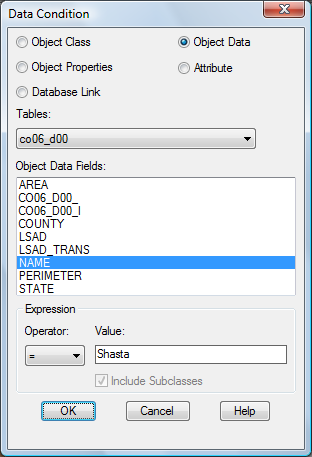 - In the Data Condition dialog box, select the Object Data option.