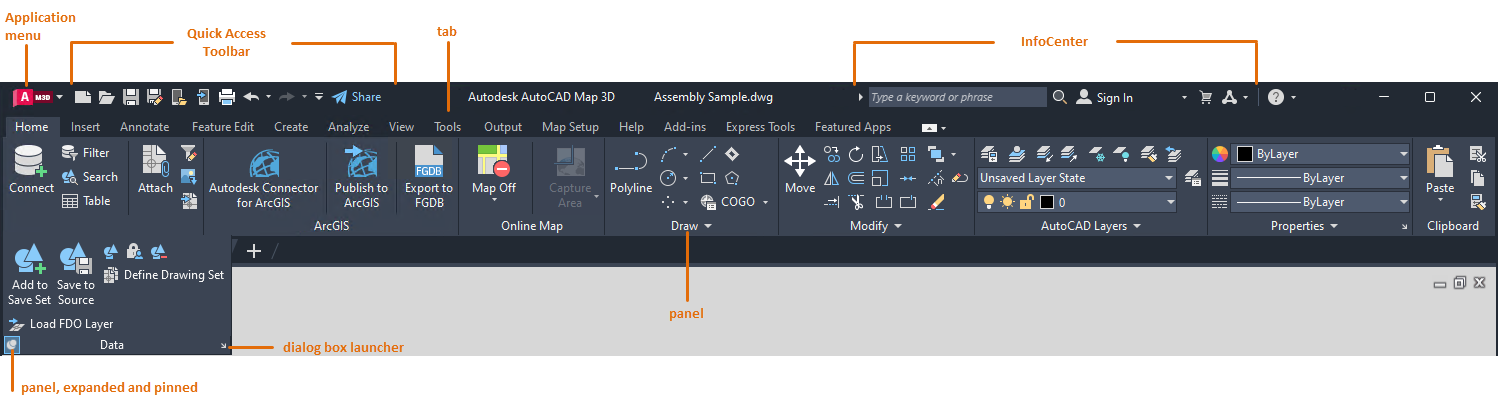 To continue this tour of AutoCAD Map 3D toolset, go to Finding Commands