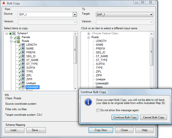 Copy the Roads layer from SDF format to SHP format using the Bulk Copy feature.