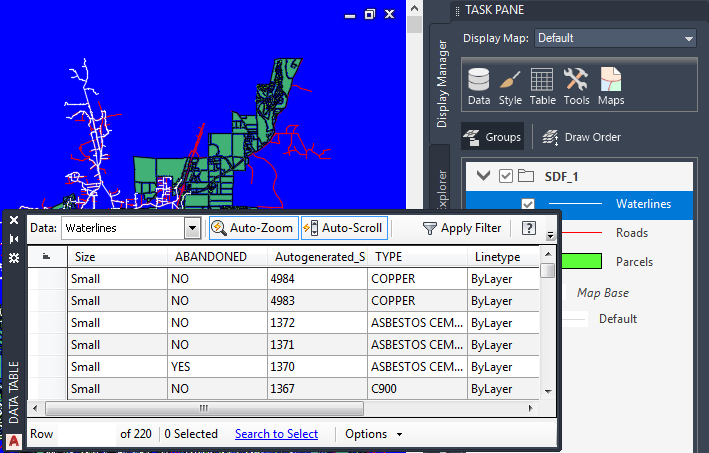 The general properties and the object data specific to Waterlines appear in the Data Table.