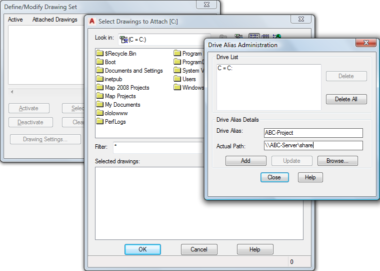 The drawing location is now mapped to your drive alias. You can now open drawings in that folder without defining any further aliases.