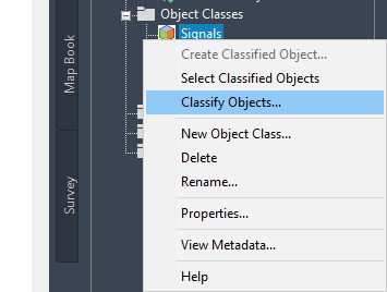 Right-click the Signals object class in Map Explorer in the Task Pane and click Classify Objects.