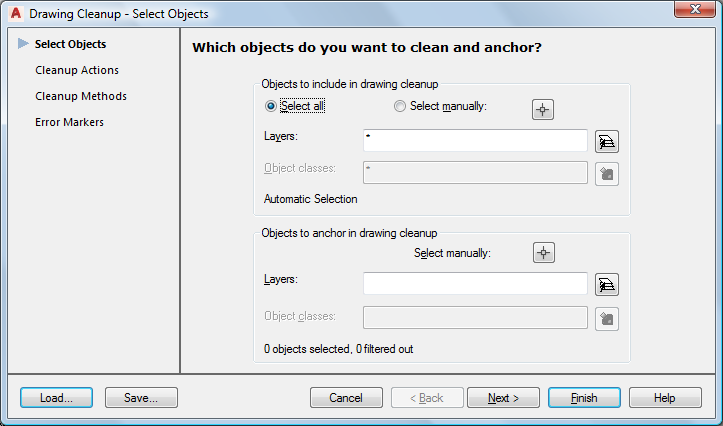 Select all objects to include in the cleanup operation.