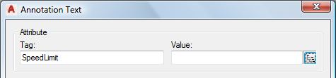 To attach text labels to drawing objects, create an annotation template first. An annotation template is a type of AutoCAD block. You define the template by defining the block in the Block Editor. The Block Editor is the canvas on which you lay out the components of the annotation. The relationship between each component determines how the annotation appears on each object when you attach the annotation later. For example, if you place a static label above a dynamic value, the final annotation has two lines (one above the other), like this example: