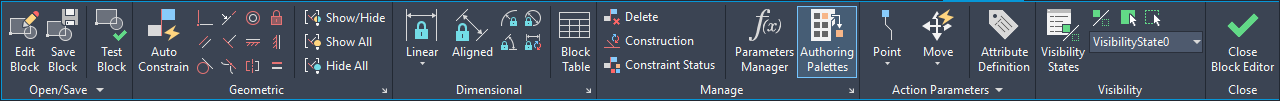A new tab called Block Editor appears in the ribbon, and a new drawing opens in the Block Editor.
