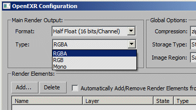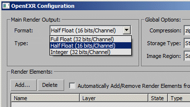 fopenexr.setLayerOutputFormat 0 0 -- set Main Render to FLOAT32 fopenexr.setLayerOutputType 0 1 -- set Main Render to RGB