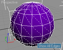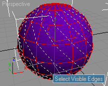 obj = convertToMesh (Sphere()) -- Create a Sphere, turn to EMesh obj.allEdges = true -- Show all edges select obj -- Select the mesh max modify mode -- Switch to Modify panel subObjectLevel = 2 -- Set Sub-Object level to Edge edgeSelSet=#() -- Init. an Array for face = 1 to obj.numfaces do -- Go through all faces for edge = 1 to 3 do -- And for every of the 3 edges if (getedgevis obj face edge) do -- If the visibility is true, append edgeSelSet (((face-1)*3)+edge) --collect the edge setedgeselection obj edgeSelSet -- Select all visible edges