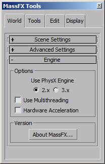 PhysXPanel ...While it is possible to create an instance of this class, it makes no sense to do so since the MassFX system creates its own instance for the actual MassFX Tools dialog.