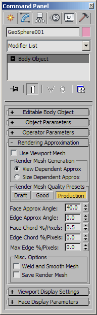 <Body_Object>.RenderViewportMeshRA(Render_Viewport_Mesh) : booleanGet/set the state of the Use Viewport Mesh checkbox.