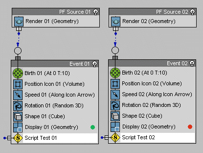 Load the second sample in the Script_Test of the second particle system.