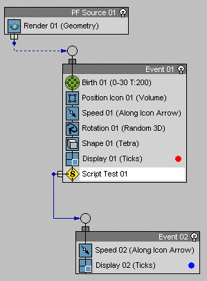 In the Init handler, the Script_Test creates a unqiue Age Test action or accesses an existing one if already created before. It then calls the Proceed methods of the Age Test to acquire its test results. Then it takes only the particles that have not passed the Age Test and checks them against a spherical volume. Those that fall inside the volume pass the Script Test, too.