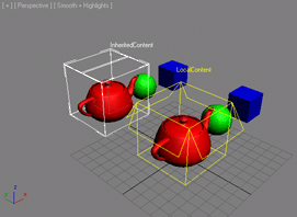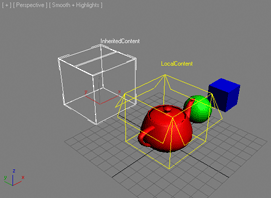 -------------------------------------Making Inherited Container Local:----------------------------------- cnt02.MakeUnique() --make the content unique format "\nCurrently In The Scene: % objects\n" objects.count print objects --print scene objects - the content is now local! -->Currently In The Scene: 8 objects -->$Container:LocalContent @ [0.000000,0.000000,0.000000] -->$Teapot:Teapot01 @ [0.000000,0.000000,0.000000] -->$Sphere:Sphere01 @ [50.000000,0.000000,15.000000] -->$Box:Box01 @ [100.000000,0.000000,0.000000] -->$Container:InheritedContent @ [0.000000,100.000000,0.000000] -->$Teapot:Teapot01 @ [0.000000,100.000000,0.000000] -->$Sphere:Sphere01 @ [50.000000,100.000000,15.000000] -->$Box:Box01 @ [100.000000,100.000000,0.000000] cnt02.localDefinitionFilename = cnt_filename --set the same file name cnt02.name ="AlsoLocal"--rename the object, too for i = 1 to cnt02.children.count do --Stack the content vertically cnt02.children[i].pos = cnt02.pos + [0,0,(i-1)*50] cnt02.SaveContainer false --and save, overwriting the original asset max views redraw --update the viewports sleep 2 --wait for two seconds