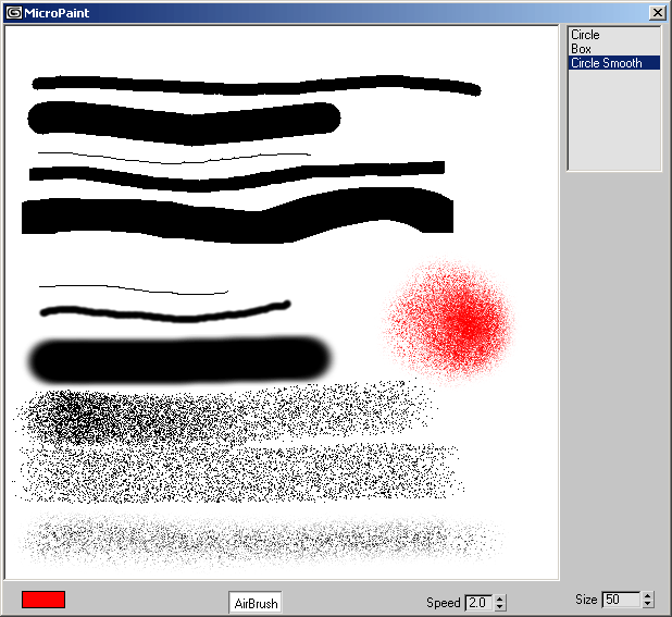 listbox BrushShape items:#("Circle", "Box", "Circle Smooth") pos:[bitmapX+5,0] width:90 We add a new brush to our "toolbox" - "Circle Smooth".