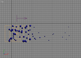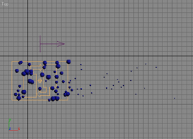 pCont.particleFloat = 1.0/(pCont.particleScale^3)This is the actual code line that calculates an influence value, which is reverse-proportional to the mass of the particle. The result is assigned to the particleFloat channel of the current particle and will be accessed by the Force Operator that has its Script Wiring enabled to accept the Float values from the particleFloat channel.