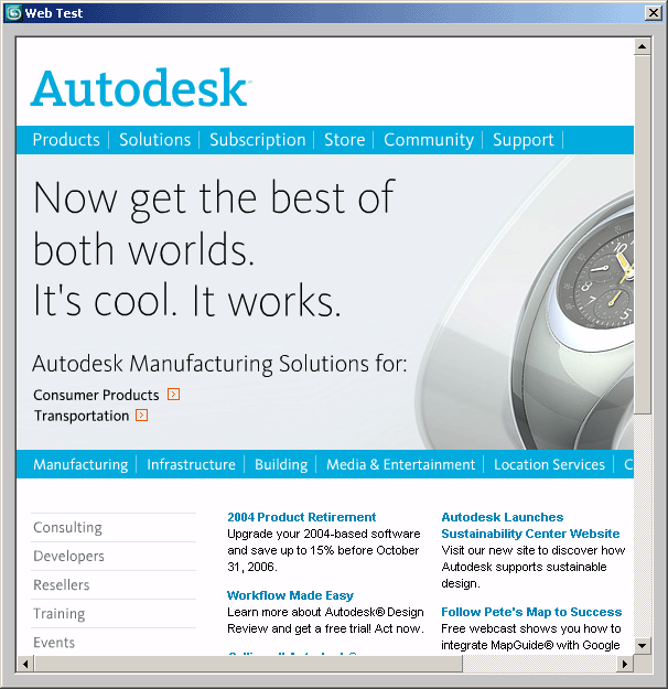 Now, if your computer has Internet access, the Web Browser displays the Autodesk homepage: