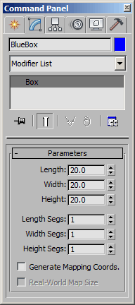 The Parameters rollout shows all the creation parameters for a box. You can change them using the spinners in the rollout. If you want to change the value of the length, width, and height segments, or the setting of the mapping coordinates in MAXScript, you need to know the syntax for these parameters. In order to find the syntax for all of the parameter settings, there are two different inspector functions.