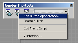 Some buttons implemented in the core of 3ds Max will not allow the user to change their appearance (see most of the buttons on the Main Toolbar like Material Editor, Render etc.). These buttons will not provide a right-click context menu at all.