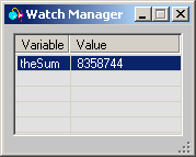 This checkbutton opens the Watch Manager dialog which can be used to monitor the values of global and local variables of interest. When checked, the Watch Manager will be opened. When unchecked, the Watch Manager will be closed.