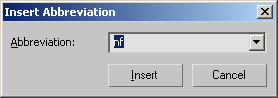 Either select an entry from the list or type in an existing abbreviation and press the Insert button to add the expanded word to your code.
