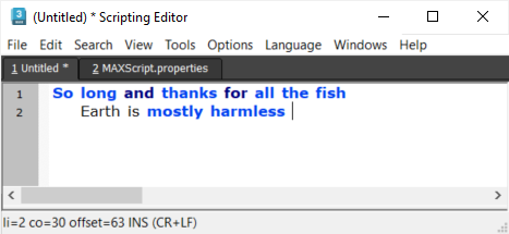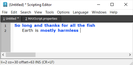 Press Ctrl+S to save the file MAXScript.properties.