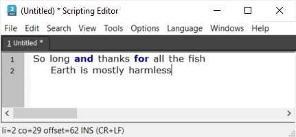 Create a new Script and enter in it: "So long and thanks for all the fish.[New Line] Earth is mostly harmless"