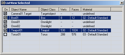 In the screenshot below, the ListItem representing Teapot01 was assigned to DropHighlight, while the ListItem representing Box01 was selected with the mouse.